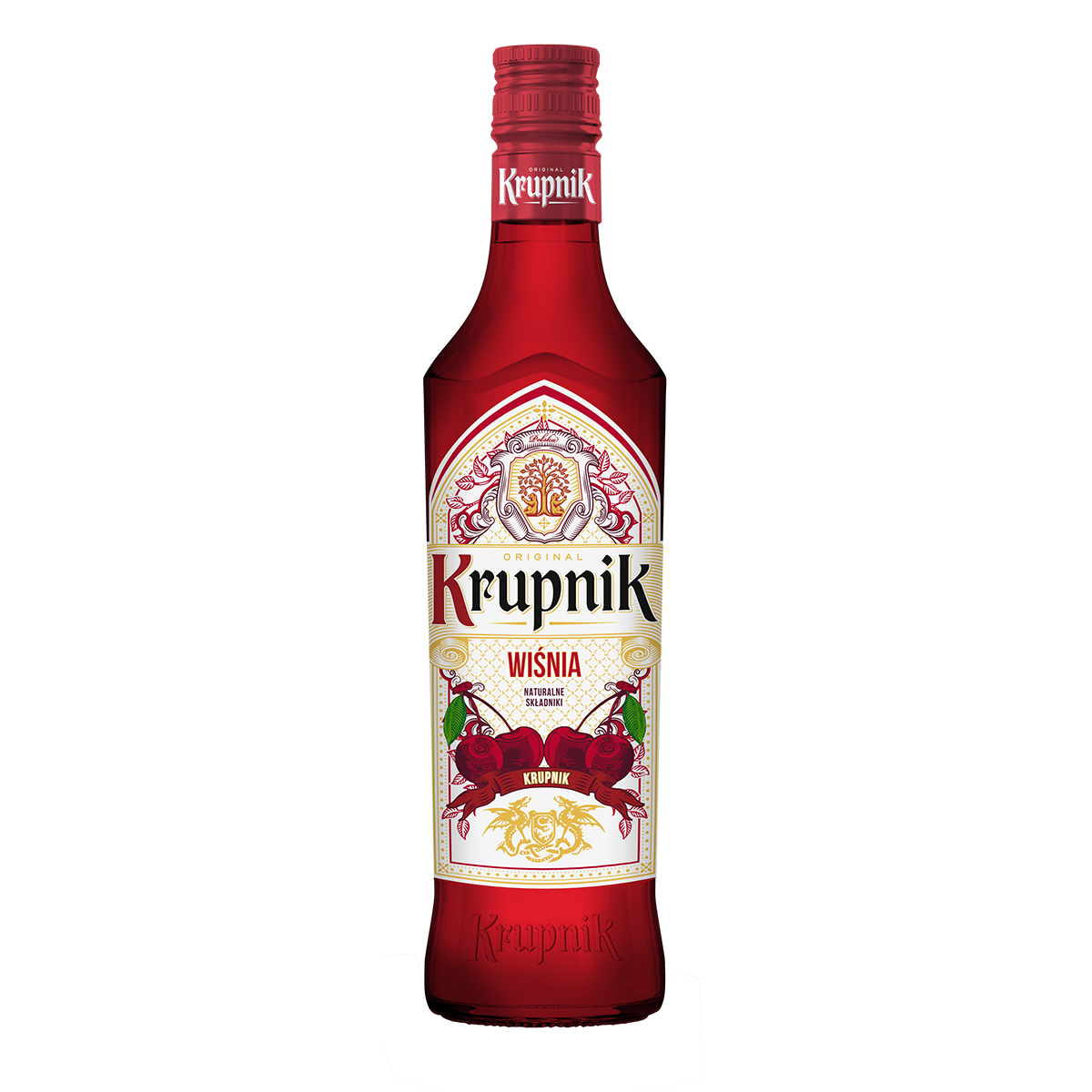 Experience the authentic flavour of Poland with the traditional Krupnik Cherry Liqueur (Wiśnia). This 500ml bottle, boasting a robust 26% ABV, captures the deep, natural sweetness and tartness of premium Polish cherries.