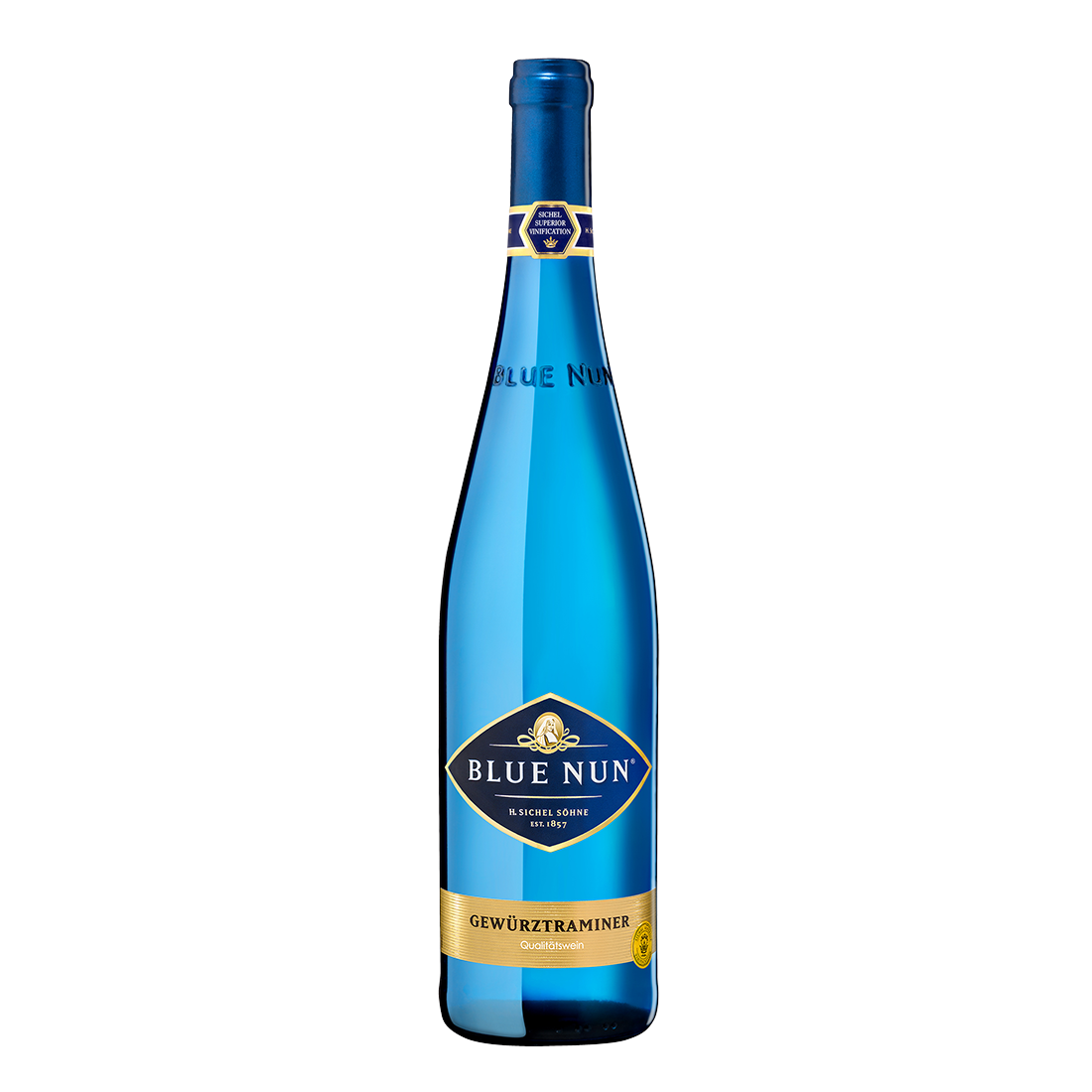 Rich yellow in color with the aromas of roses and vanilla it is a perfect match for white meat and spicy cheese. Mild acidity and rich taste make Blue Nun Gewürztraminer so enjoyable.